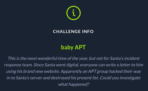 # Flag : HTB{n1c3_try_3lv35_but_n0t_g00d_3n0ugh}baby APT [ Forensics ]