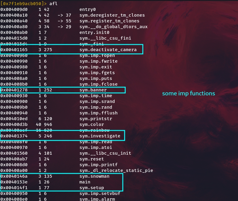 The main funciton after executing calls 3 functions , let's checkout the snowman function