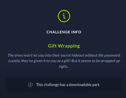 print(common_modulus(e1, e2, n, c1, c2).decode())# Flag : HTB{c0mm0n_m0d_4774ck_15_4n07h3r_cl4ss1c}Giftwrap [ Reversing ]